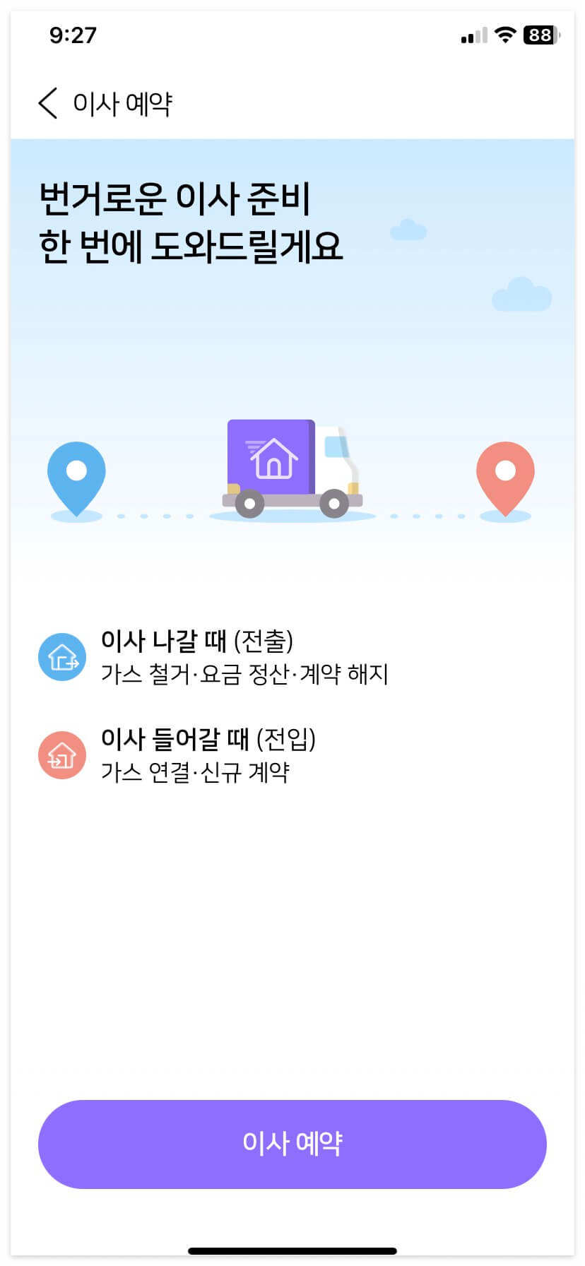 - 거주지 도시가스 이전 및 개통 예약