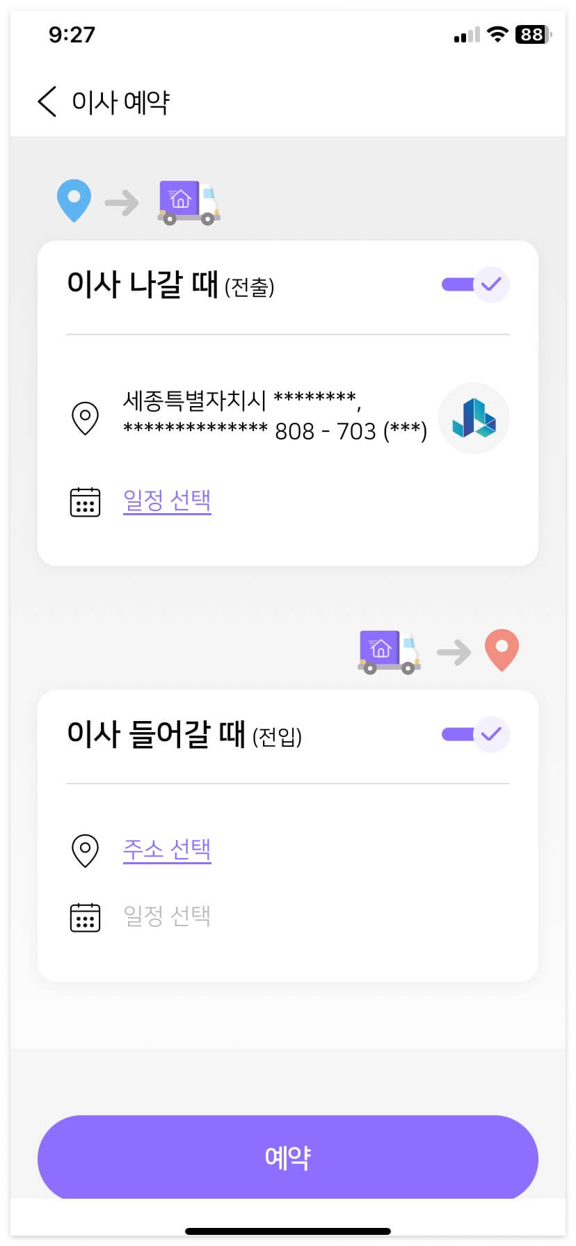 2. 이사 날짜 입력 후 확인