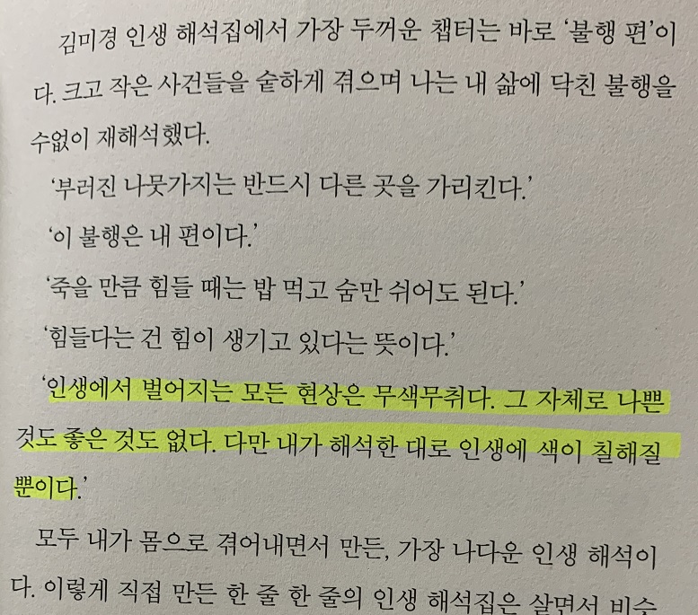 모두 내가 몸으로 겪어내면서 만든 가장 나다운 인생 해석이다.